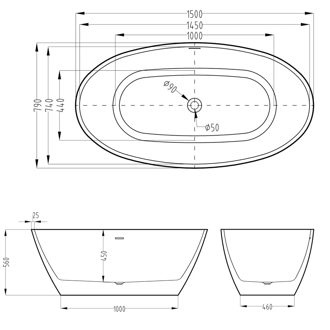 One piece freestanding bathtub 100% lucite acrylic material made bathtub, smooth and glossy surface High thermal water heat retention Built-in overflow and pop-up drain system, brass material prevent pipe leaking Six of level adjustment feet, solid and stable